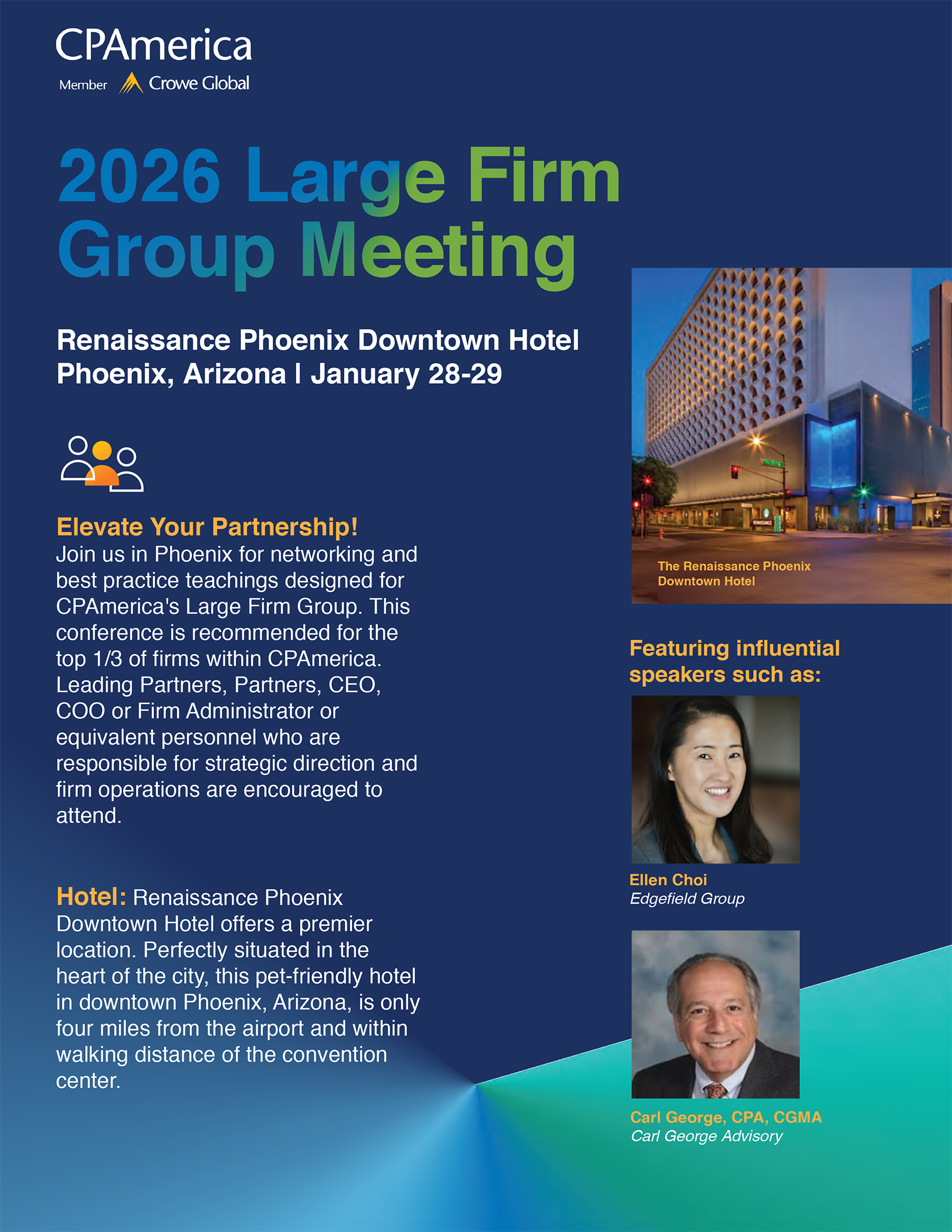 Join us in Phoenix, AZ for networking and best practice teachings designed for CPAmerica’s Large Firm Group.